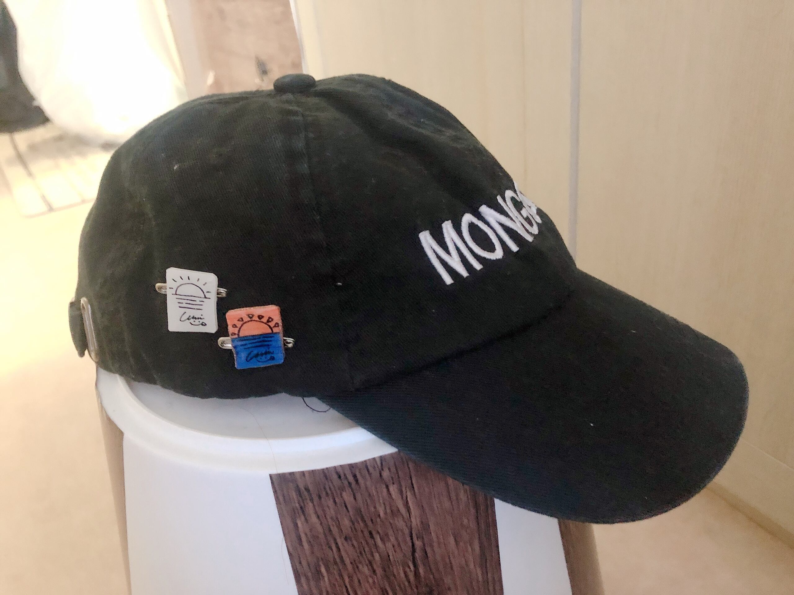 完全ハンドメイドのピンパッチ、2色セットです。